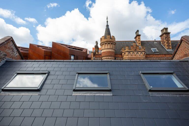 We were hired to complete a large roof renewal as part of a wider construction project. Three existing buildings had been knocked through internally so that they could be converted into new open plan offices. As the building was a shell, our team was able to come in and carry out all the necessary roofing works once the initial steelwork had been completed.